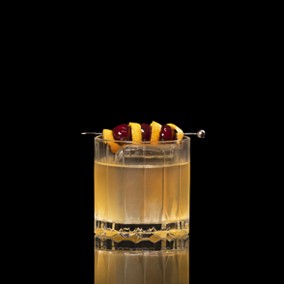Stir all ingredients with ice and strain into rocks glass over fresh single cube.