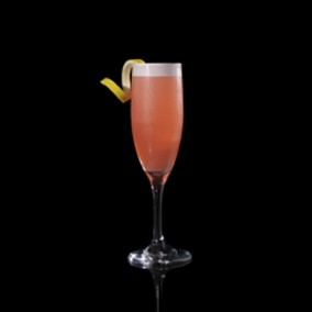 Shake all ingredients with ice and strain into champagne flute.